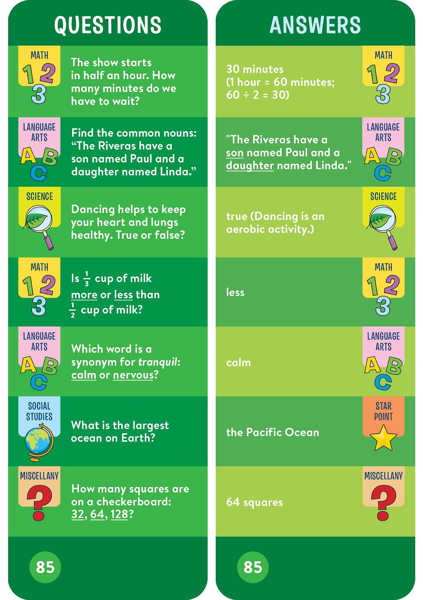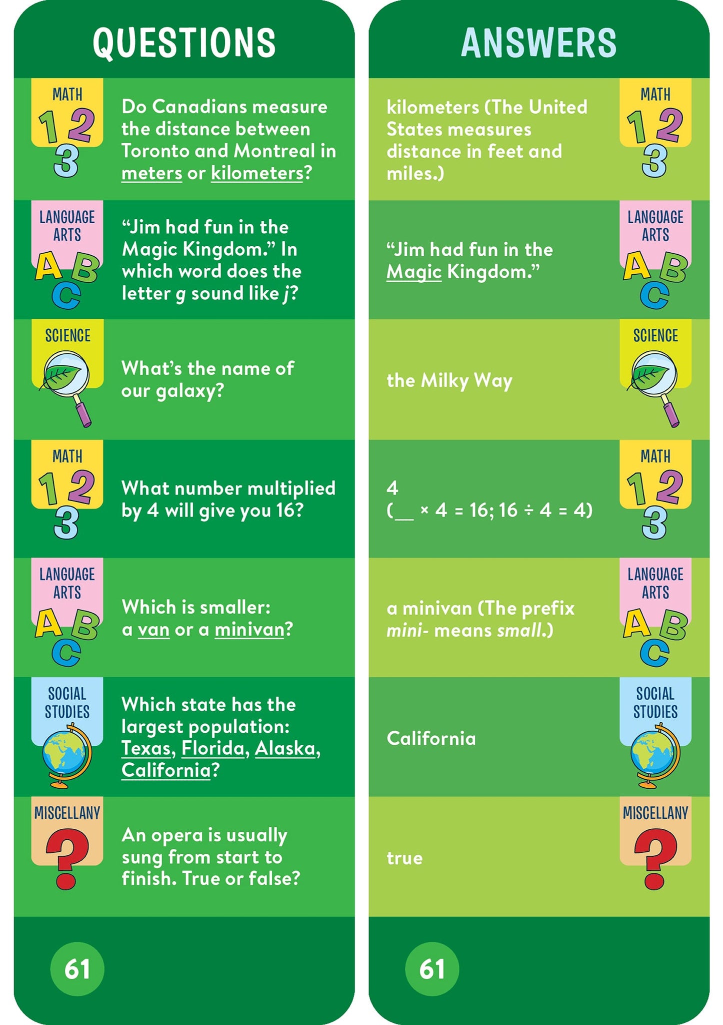 Brain Quest 3rd Grade Smart Cards helps kids aged 8 – 9 to learn core classroom subjects in a smart, entertaining, and engaging way. It’s Q&A fun that third graders can use to test their knowledge. Smart cards feature hundreds of questions with answers to help kids know exactly what they need to know, when they need to know it.