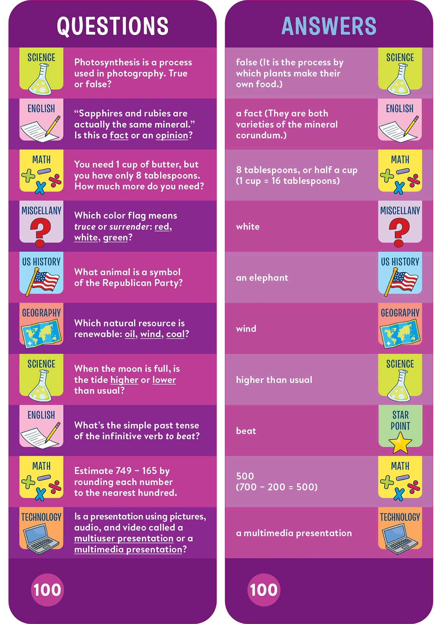 - 1,500 questions and answers covering math, science, English, US History, Geography, and more