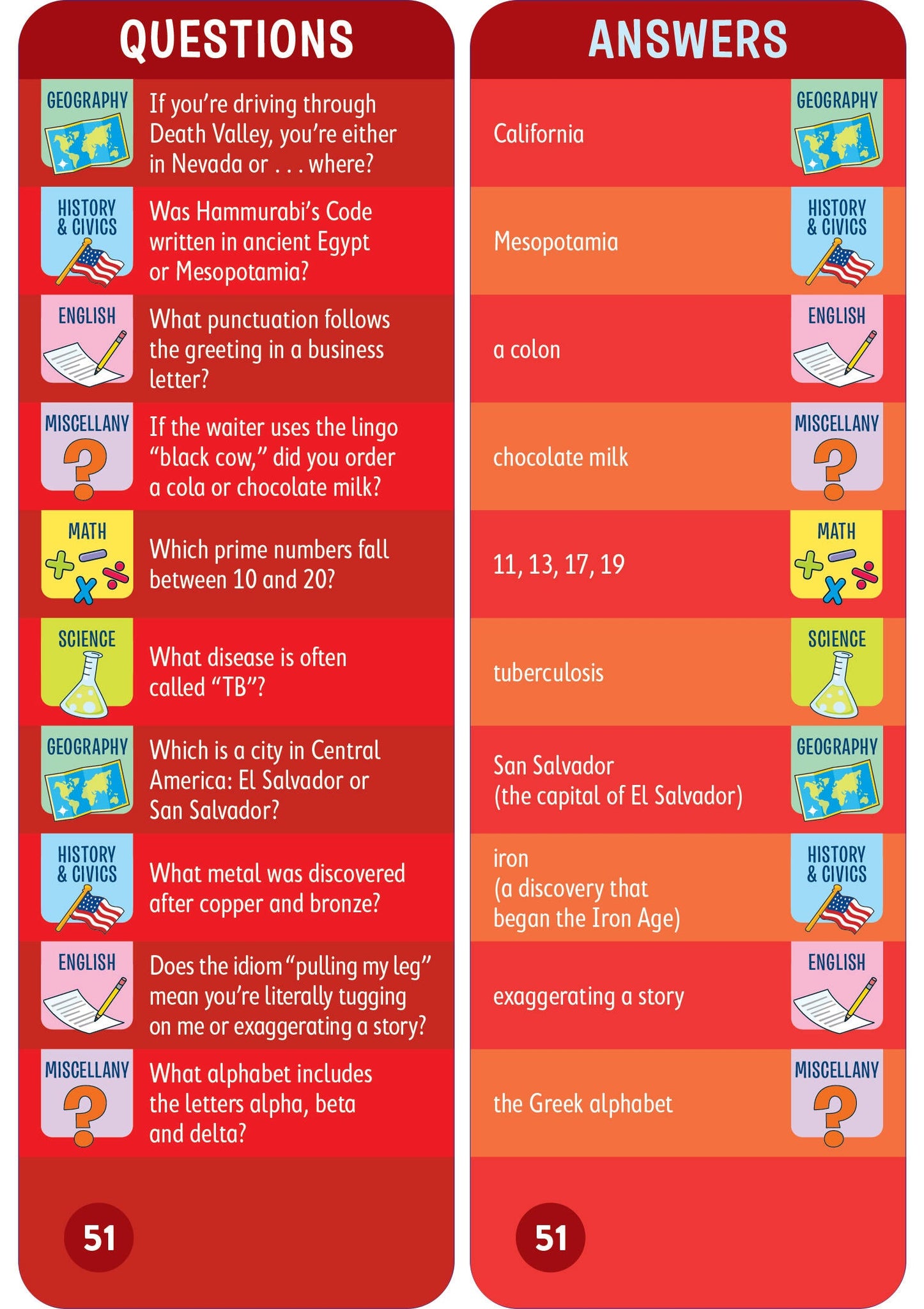 • Two full-color Q&A decks in a reusable flip-top storage box
