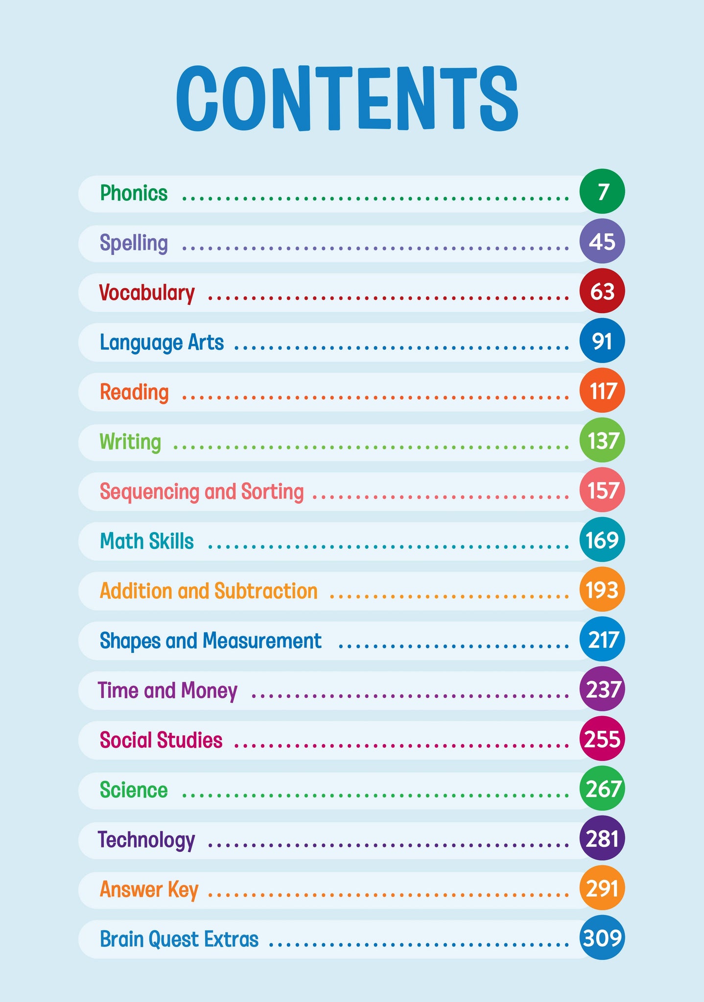 Loved by kids, teacher approved, and trusted by parents, Brain Quest Grade 1 Workbook reviews and reinforces what children are learning in the classroom in an instantly engaging, entertaining way. Each page is jam packed with fun activities, practice exercises, and games covering ABCs, phonics, spelling and vocabulary, time and money, maps, science, and much more.